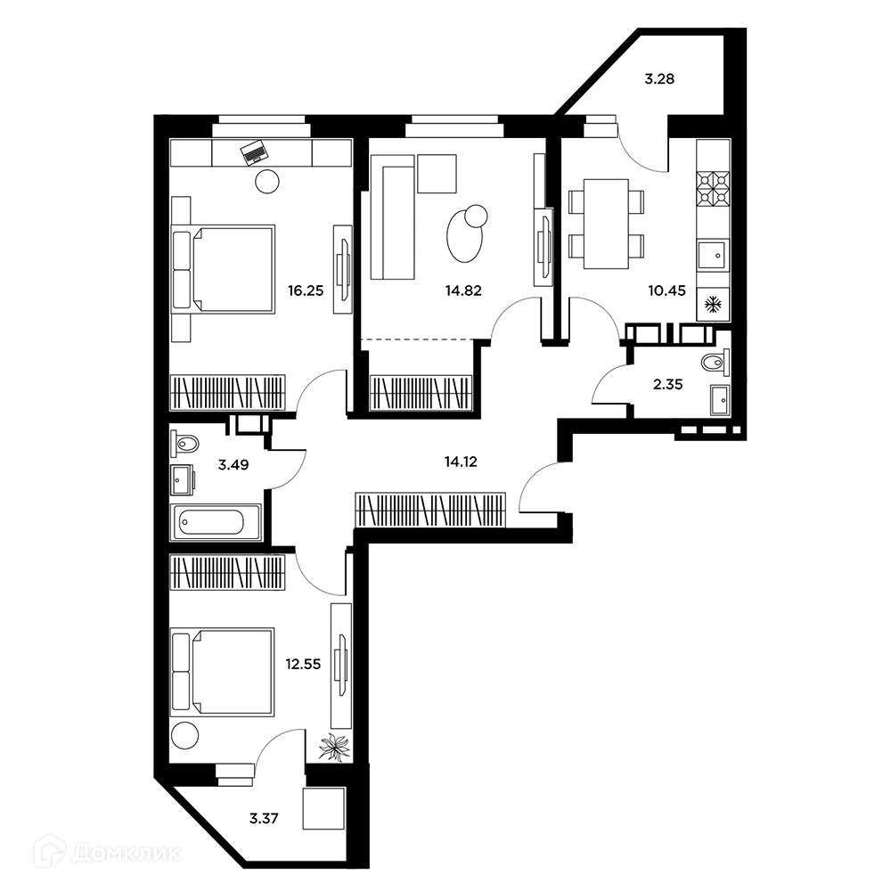 3-комнатная