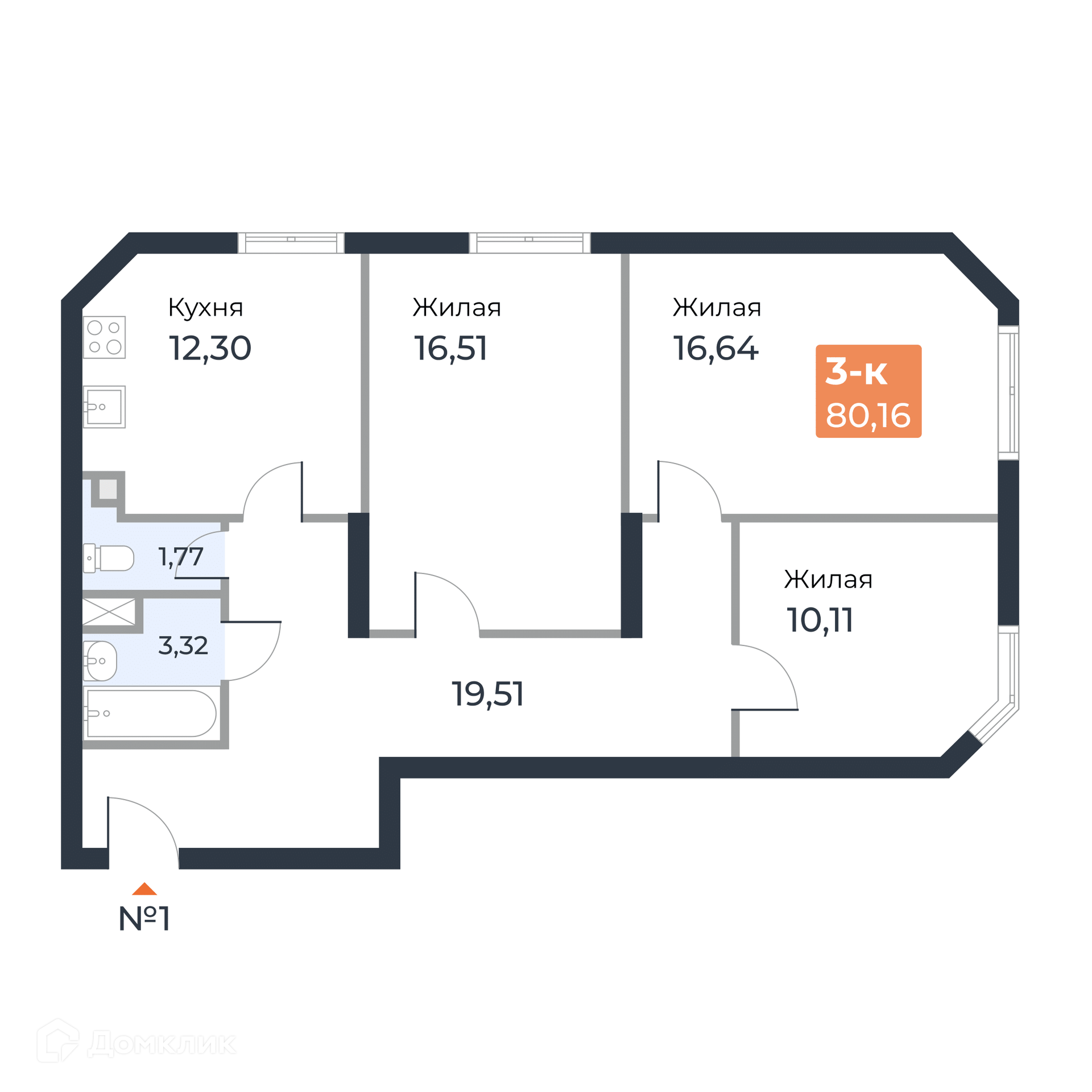 - ✅ Кухня: 12.3 м² — идеальна для семейных ужинов.