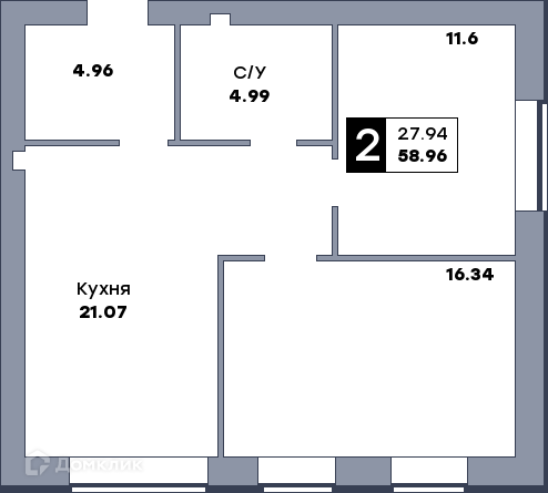 - Жилая площадь: 27.94 м²
