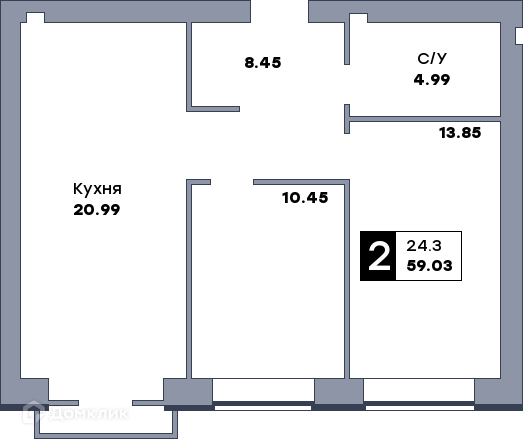 Планировка 2 комн. в ЖК Заречье