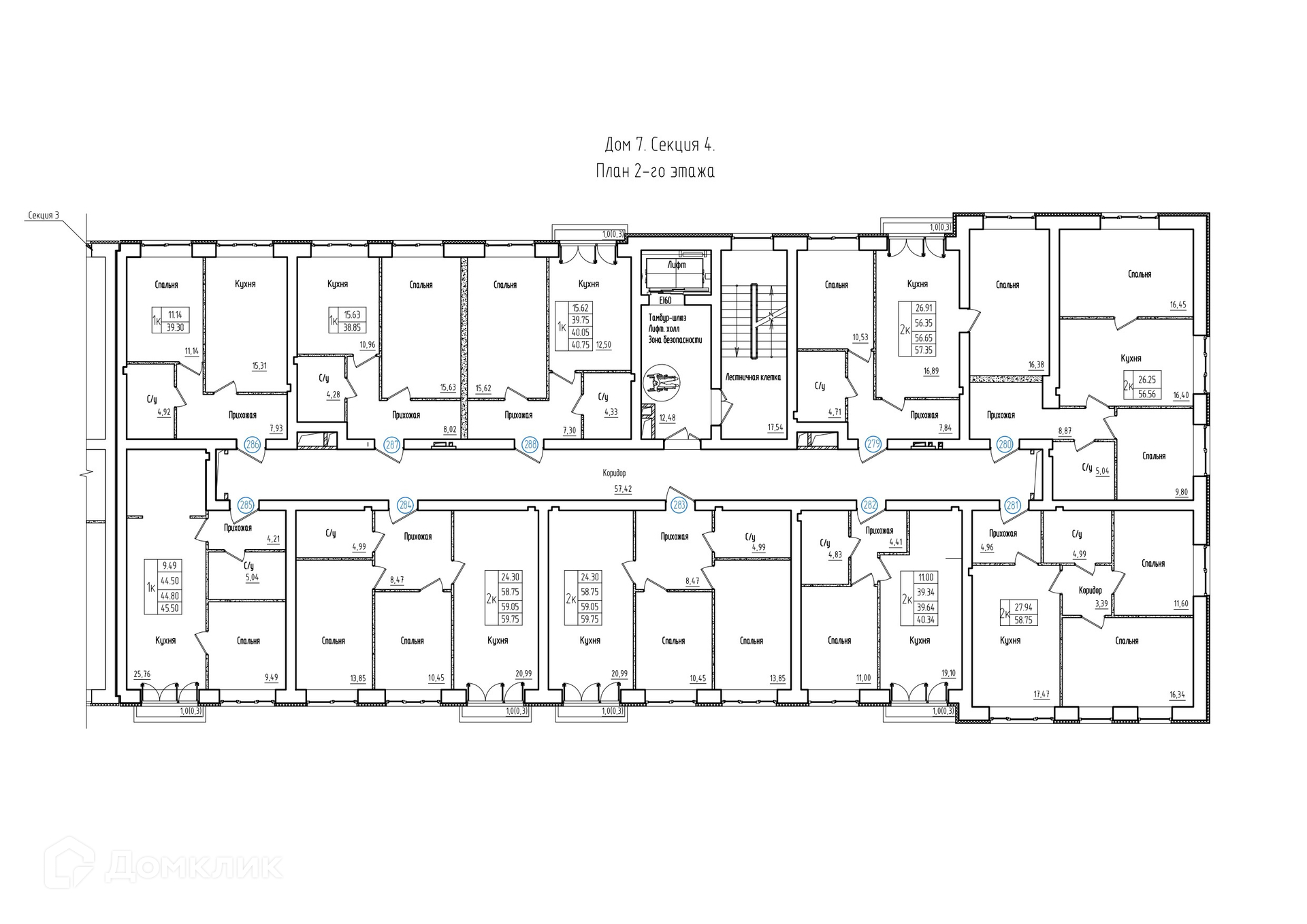 Площади квартир