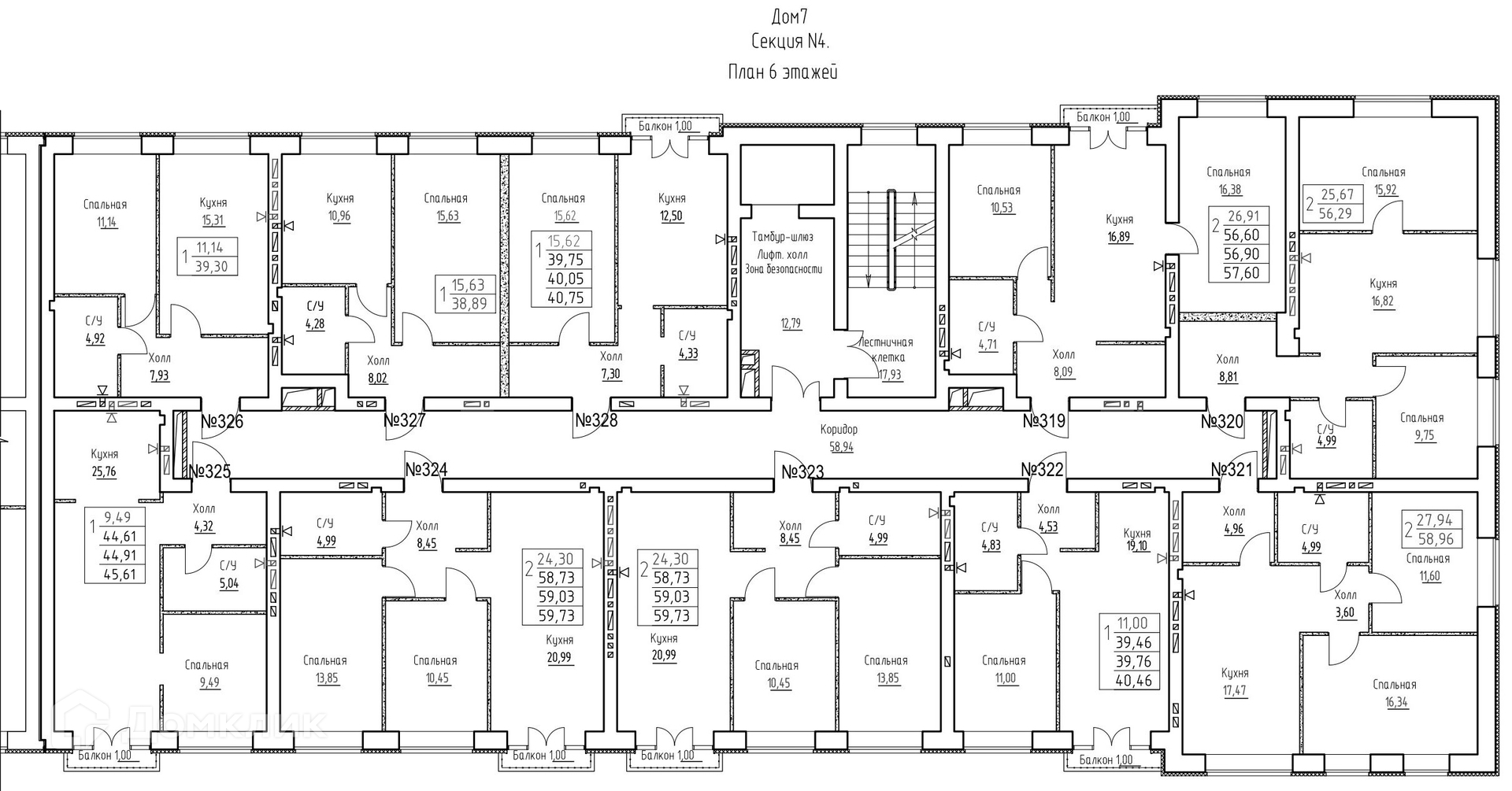 Площади квартир
