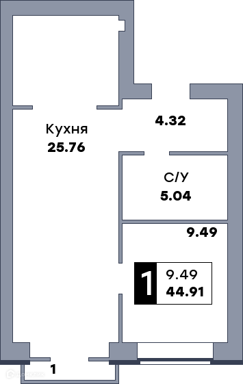 - Количество комнат: 1-комнатная квартира