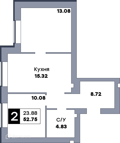 - Общая площадь: 53 м²