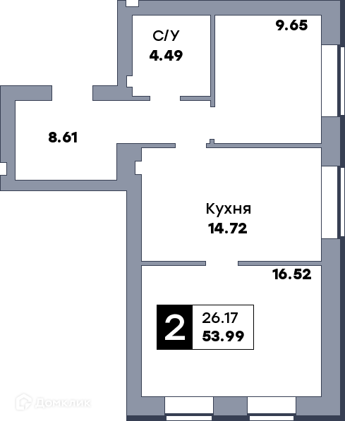- Жилая площадь: 26.17 м²