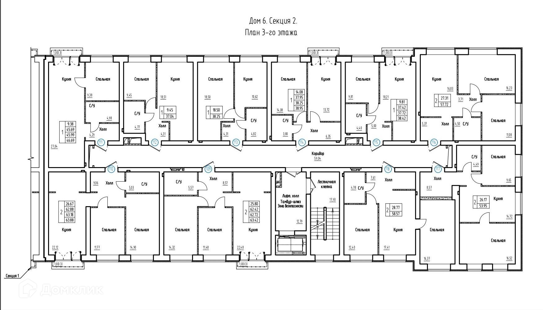 Площади квартир