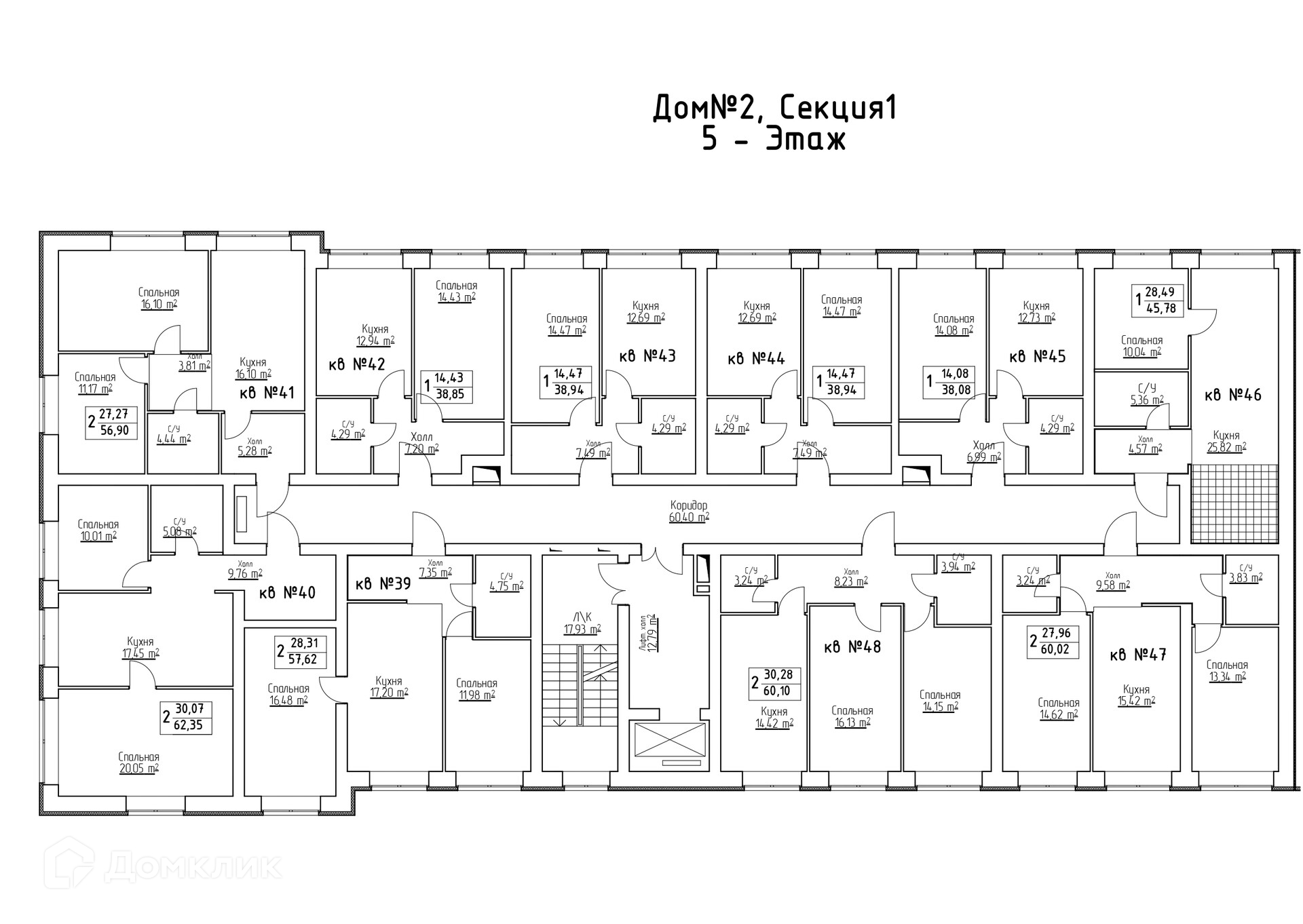 Площади квартир