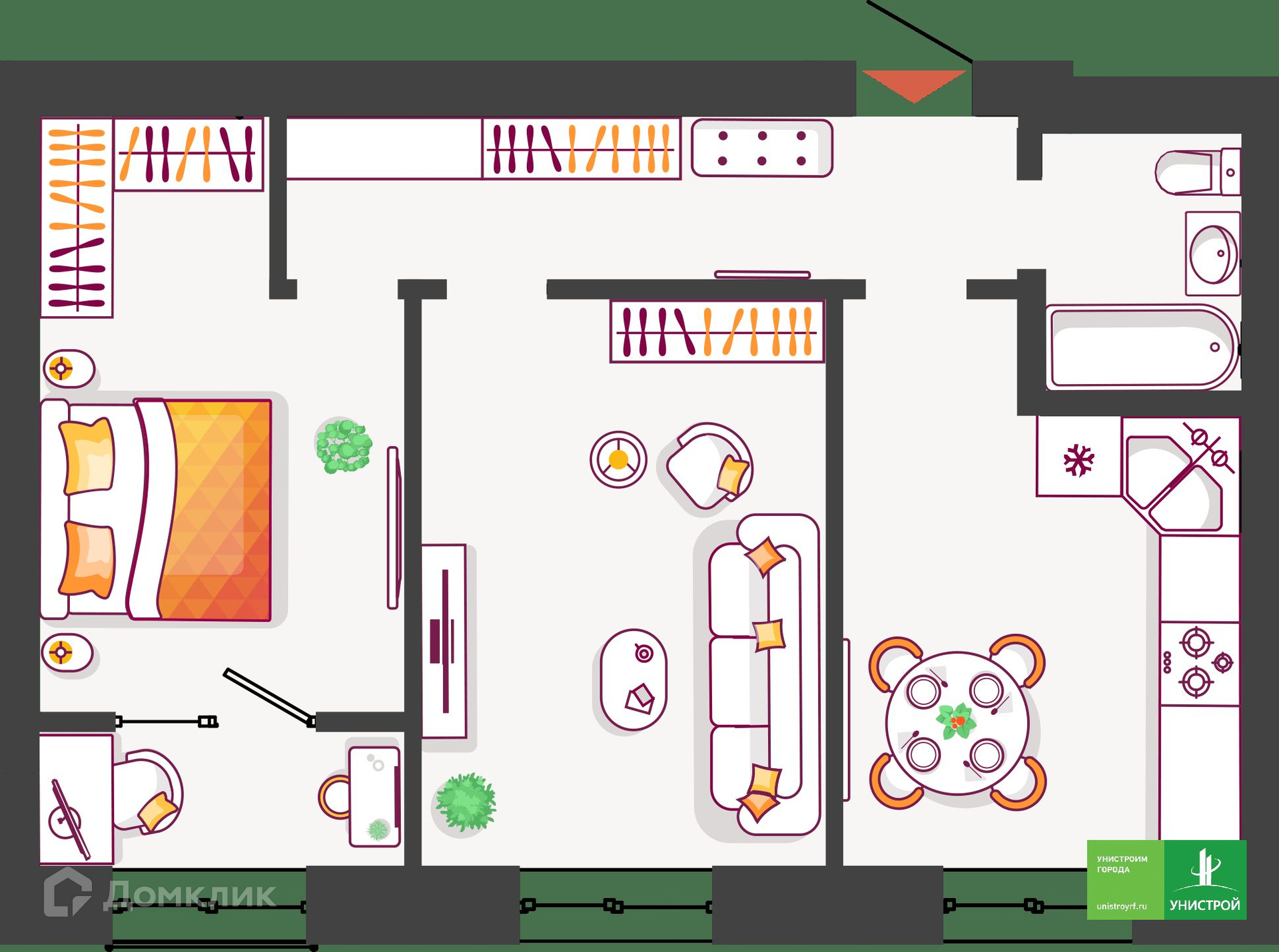 Новый дом приятно удивит вас необычной концепцией и экологичным благоустройством. Гармоничное городское пространство, стильная архитектура, двор-парк. Современная среда, закрытая от машин и доступа посторонних с фонтаном и лаунж-зоной во дворе для ценителей комфорта, удобства расположения, современных инженерных решений и высокого качества строительства от надежного застройщика «Унистрой». Новый микрорайон Жилой комплекс расположен в Автозаводском районе Тольятти. В 10 минутах езды от Южного бульвара – спортивный комплекс «Лада-Арена», торговые центры «Акварель», «Капитал», строительный магазин «Леруа Мерлен». Рядом с ЖК – остановка общественного транспорта «Ул. Полякова», откуда можно уехать в любой район города, поликлиника №3. В Южном бульваре расположен детский сад №116, рядом – гимназия №77. На территории комплекса ведется проектирование второго детского сада и дополнительных двух внутриквартальных дорог, которые позволят выехать на Южное шоссе и быстро добраться до любой точки города, загород в выходные. Двор-парк Новый дом, как и весь проект ЖК, будет реализован в сегменте комфорт-класса, но наделен принципиально новыми для города особенностями. Новинкой дома станет уютный двор-парк. Пространство будет закрыто от машин и доступа посторонних. Зайти на территорию смогут только жители и их гости. Двор будет оборудован охраной и видеонаблюдением. Вы сможете с экрана телефона наблюдать, как играют ваши дети во дворе. Для приватного отдыха, работы на свежем воздухе и встреч с друзьями будет лаунж-зона с фонтаном и разнообразным озеленением. Для прогулок с детьми – экологичные игровые пространства с использованием дерева, гальки, щепы, песка. Стильный дом Мы спроектировали входы в подъезды и двор без пандусов и ступеней, чтобы вам было удобно гулять с коляской. Привычное пространство первых этажей будет наполнено новыми стилевыми решениями. На первых этажах каждого подъезда мы установили колясочные комнаты с велопаркингом. Санки, велосипеды, коляски не будут занимать место в вашей квартире. В доме будут установлены бесшумные лифты и удобная навигация. Террасы, теплые лоджии, евродвушки В новом доме представлено большое разнообразие планировочных решений. Эксклюзивный формат квартир с террасами во дворах позволит создать уютное место для летних завтраков. Для удобства в солнечные и дождливые дни предусмотрены теневые навесы – маркизы. Балконы в новом доме заменили теплые лоджии, которые делают помещение полезным и позволяют его использовать круглый год. Теплые лоджии освобождают вас от необходимости утепления помещения и установки дополнительных отопительных приборов. На теплой лоджии можно оборудовать небольшой спортзал, рабочий кабинет или зону отдыха. Также в доме есть студии, 1-комнатные, евродвушки, 2- и 3-комнатные квартиры. Современные решения Все квартиры будут сдаваться в качественной предчистовой отделке. Горизонтальная разводка отопления (трубы спрятаны в полу) позволит воплотить все дизайнерские решения. Показания приборов учета воды, электричества тепла будут автоматически подаваться в Сервисную компанию. Решение удобно еще и тем, что 24/7 ведется мониторинг расхода всех ресурсов. И в случае чрезмерного расхода, к примеру, воды, специалисты смогут перекрыть ее без доступа в квартиру, в общем 