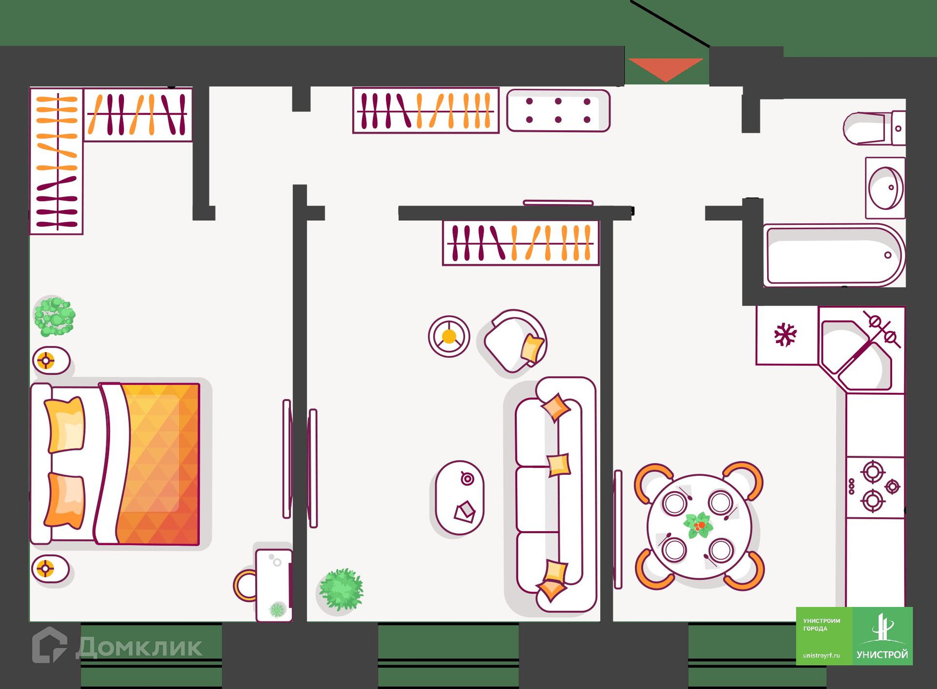 Новый дом приятно удивит вас необычной концепцией и экологичным благоустройством. Гармоничное городское пространство, стильная архитектура, двор-парк. Современная среда, закрытая от машин и доступа посторонних с фонтаном и лаунж-зоной во дворе для ценителей комфорта, удобства расположения, современных инженерных решений и высокого качества строительства от надежного застройщика «Унистрой». Новый микрорайон Жилой комплекс расположен в Автозаводском районе Тольятти. В 10 минутах езды от Южного бульвара – спортивный комплекс «Лада-Арена», торговые центры «Акварель», «Капитал», строительный магазин «Леруа Мерлен». Рядом с ЖК – остановка общественного транспорта «Ул. Полякова», откуда можно уехать в любой район города, поликлиника №3. В Южном бульваре расположен детский сад №116, рядом – гимназия №77. На территории комплекса ведется проектирование второго детского сада и дополнительных двух внутриквартальных дорог, которые позволят выехать на Южное шоссе и быстро добраться до любой точки города, загород в выходные. Двор-парк Новый дом, как и весь проект ЖК, будет реализован в сегменте комфорт-класса, но наделен принципиально новыми для города особенностями. Новинкой дома станет уютный двор-парк. Пространство будет закрыто от машин и доступа посторонних. Зайти на территорию смогут только жители и их гости. Двор будет оборудован охраной и видеонаблюдением. Вы сможете с экрана телефона наблюдать, как играют ваши дети во дворе. Для приватного отдыха, работы на свежем воздухе и встреч с друзьями будет лаунж-зона с фонтаном и разнообразным озеленением. Для прогулок с детьми – экологичные игровые пространства с использованием дерева, гальки, щепы, песка. Стильный дом Мы спроектировали входы в подъезды и двор без пандусов и ступеней, чтобы вам было удобно гулять с коляской. Привычное пространство первых этажей будет наполнено новыми стилевыми решениями. На первых этажах каждого подъезда мы установили колясочные комнаты с велопаркингом. Санки, велосипеды, коляски не будут занимать место в вашей квартире. В доме будут установлены бесшумные лифты и удобная навигация. Террасы, теплые лоджии, евродвушки В новом доме представлено большое разнообразие планировочных решений. Эксклюзивный формат квартир с террасами во дворах позволит создать уютное место для летних завтраков. Для удобства в солнечные и дождливые дни предусмотрены теневые навесы – маркизы. Балконы в новом доме заменили теплые лоджии, которые делают помещение полезным и позволяют его использовать круглый год. Теплые лоджии освобождают вас от необходимости утепления помещения и установки дополнительных отопительных приборов. На теплой лоджии можно оборудовать небольшой спортзал, рабочий кабинет или зону отдыха. Также в доме есть студии, 1-комнатные, евродвушки, 2- и 3-комнатные квартиры. Современные решения Все квартиры будут сдаваться в качественной предчистовой отделке. Горизонтальная разводка отопления (трубы спрятаны в полу) позволит воплотить все дизайнерские решения. Показания приборов учета воды, электричества тепла будут автоматически подаваться в Сервисную компанию. Решение удобно еще и тем, что 24/7 ведется мониторинг расхода всех ресурсов. И в случае чрезмерного расхода, к примеру, воды, специалисты смогут перекрыть ее без доступа в квартиру, в общем 