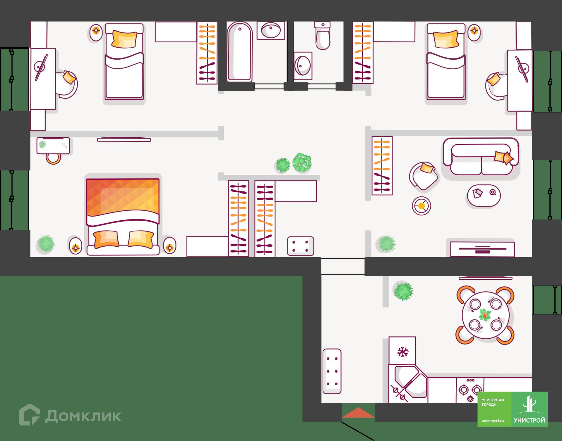 Новый дом приятно удивит вас необычной концепцией и экологичным благоустройством. Гармоничное городское пространство, стильная архитектура, двор-парк. Современная среда, закрытая от машин и доступа посторонних с фонтаном и лаунж-зоной во дворе для ценителей комфорта, удобства расположения, современных инженерных решений и высокого качества строительства от надежного застройщика «Унистрой». Новый микрорайон Жилой комплекс расположен в Автозаводском районе Тольятти. В 10 минутах езды от Южного бульвара – спортивный комплекс «Лада-Арена», торговые центры «Акварель», «Капитал», строительный магазин «Леруа Мерлен». Рядом с ЖК – остановка общественного транспорта «Ул. Полякова», откуда можно уехать в любой район города, поликлиника №3. В Южном бульваре расположен детский сад №116, рядом – гимназия №77. На территории комплекса ведется проектирование второго детского сада и дополнительных двух внутриквартальных дорог, которые позволят выехать на Южное шоссе и быстро добраться до любой точки города, загород в выходные. Двор-парк Новый дом, как и весь проект ЖК, будет реализован в сегменте комфорт-класса, но наделен принципиально новыми для города особенностями. Новинкой дома станет уютный двор-парк. Пространство будет закрыто от машин и доступа посторонних. Зайти на территорию смогут только жители и их гости. Двор будет оборудован охраной и видеонаблюдением. Вы сможете с экрана телефона наблюдать, как играют ваши дети во дворе. Для приватного отдыха, работы на свежем воздухе и встреч с друзьями будет лаунж-зона с фонтаном и разнообразным озеленением. Для прогулок с детьми – экологичные игровые пространства с использованием дерева, гальки, щепы, песка. Стильный дом Мы спроектировали входы в подъезды и двор без пандусов и ступеней, чтобы вам было удобно гулять с коляской. Привычное пространство первых этажей будет наполнено новыми стилевыми решениями. На первых этажах каждого подъезда мы установили колясочные комнаты с велопаркингом. Санки, велосипеды, коляски не будут занимать место в вашей квартире. В доме будут установлены бесшумные лифты и удобная навигация. Террасы, теплые лоджии, евродвушки В новом доме представлено большое разнообразие планировочных решений. Эксклюзивный формат квартир с террасами во дворах позволит создать уютное место для летних завтраков. Для удобства в солнечные и дождливые дни предусмотрены теневые навесы – маркизы. Балконы в новом доме заменили теплые лоджии, которые делают помещение полезным и позволяют его использовать круглый год. Теплые лоджии освобождают вас от необходимости утепления помещения и установки дополнительных отопительных приборов. На теплой лоджии можно оборудовать небольшой спортзал, рабочий кабинет или зону отдыха. Также в доме есть студии, 1-комнатные, евродвушки, 2- и 3-комнатные квартиры. Современные решения Все квартиры будут сдаваться в качественной предчистовой отделке. Горизонтальная разводка отопления (трубы спрятаны в полу) позволит воплотить все дизайнерские решения. Показания приборов учета воды, электричества тепла будут автоматически подаваться в Сервисную компанию. Решение удобно еще и тем, что 24/7 ведется мониторинг расхода всех ресурсов. И в случае чрезмерного расхода, к примеру, воды, специалисты смогут перекрыть ее без доступа в квартиру, в общем 