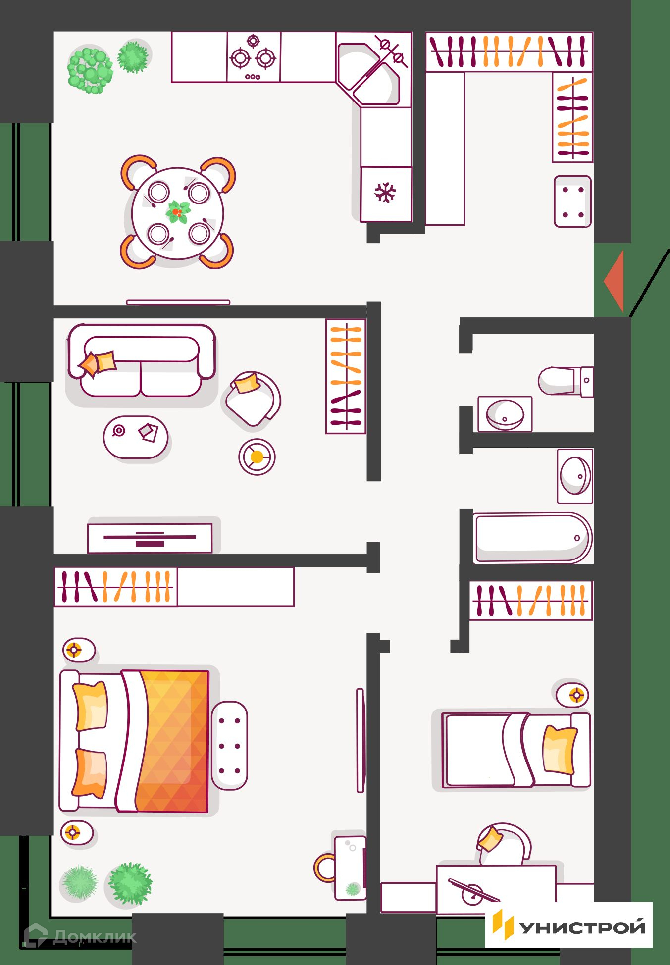 Новый дом приятно удивит вас необычной концепцией и экологичным благоустройством. Гармоничное городское пространство, стильная архитектура, двор-парк. Современная среда, закрытая от машин и доступа посторонних с фонтаном и лаунж-зоной во дворе для ценителей комфорта, удобства расположения, современных инженерных решений и высокого качества строительства от надежного застройщика «Унистрой». Новый микрорайон Жилой комплекс расположен в Автозаводском районе Тольятти. В 10 минутах езды от Южного бульвара – спортивный комплекс «Лада-Арена», торговые центры «Акварель», «Капитал», строительный магазин «Леруа Мерлен». Рядом с ЖК – остановка общественного транспорта «Ул. Полякова», откуда можно уехать в любой район города, поликлиника №3. В Южном бульваре расположен детский сад №116, рядом – гимназия №77. На территории комплекса ведется проектирование второго детского сада и дополнительных двух внутриквартальных дорог, которые позволят выехать на Южное шоссе и быстро добраться до любой точки города, загород в выходные. Двор-парк Новый дом, как и весь проект ЖК, будет реализован в сегменте комфорт-класса, но наделен принципиально новыми для города особенностями. Новинкой дома станет уютный двор-парк. Пространство будет закрыто от машин и доступа посторонних. Зайти на территорию смогут только жители и их гости. Двор будет оборудован охраной и видеонаблюдением. Вы сможете с экрана телефона наблюдать, как играют ваши дети во дворе. Для приватного отдыха, работы на свежем воздухе и встреч с друзьями будет лаунж-зона с фонтаном и разнообразным озеленением. Для прогулок с детьми – экологичные игровые пространства с использованием дерева, гальки, щепы, песка. Стильный дом Мы спроектировали входы в подъезды и двор без пандусов и ступеней, чтобы вам было удобно гулять с коляской. Привычное пространство первых этажей будет наполнено новыми стилевыми решениями. На первых этажах каждого подъезда мы установили колясочные комнаты с велопаркингом. Санки, велосипеды, коляски не будут занимать место в вашей квартире. В доме будут установлены бесшумные лифты и удобная навигация. Террасы, теплые лоджии, евродвушки В новом доме представлено большое разнообразие планировочных решений. Эксклюзивный формат квартир с террасами во дворах позволит создать уютное место для летних завтраков. Для удобства в солнечные и дождливые дни предусмотрены теневые навесы – маркизы. Балконы в новом доме заменили теплые лоджии, которые делают помещение полезным и позволяют его использовать круглый год. Теплые лоджии освобождают вас от необходимости утепления помещения и установки дополнительных отопительных приборов. На теплой лоджии можно оборудовать небольшой спортзал, рабочий кабинет или зону отдыха. Также в доме есть студии, 1-комнатные, евродвушки, 2- и 3-комнатные квартиры. Современные решения Все квартиры будут сдаваться в качественной предчистовой отделке. Горизонтальная разводка отопления (трубы спрятаны в полу) позволит воплотить все дизайнерские решения. Показания приборов учета воды, электричества тепла будут автоматически подаваться в Сервисную компанию. Решение удобно еще и тем, что 24/7 ведется мониторинг расхода всех ресурсов. И в случае чрезмерного расхода, к примеру, воды, специалисты смогут перекрыть ее без доступа в квартиру, в общем 