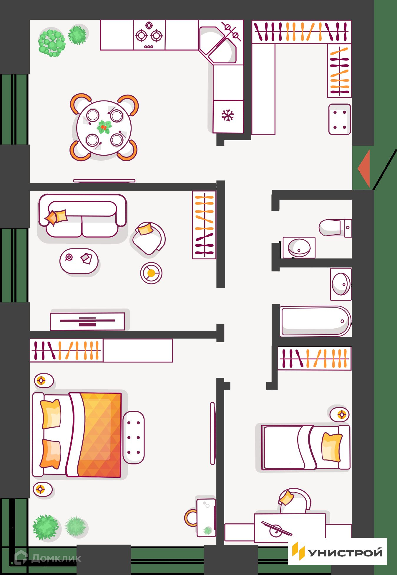 Новый дом приятно удивит вас необычной концепцией и экологичным благоустройством. Гармоничное городское пространство, стильная архитектура, двор-парк. Современная среда, закрытая от машин и доступа посторонних с фонтаном и лаунж-зоной во дворе для ценителей комфорта, удобства расположения, современных инженерных решений и высокого качества строительства от надежного застройщика «Унистрой». Новый микрорайон Жилой комплекс расположен в Автозаводском районе Тольятти. В 10 минутах езды от Южного бульвара – спортивный комплекс «Лада-Арена», торговые центры «Акварель», «Капитал», строительный магазин «Леруа Мерлен». Рядом с ЖК – остановка общественного транспорта «Ул. Полякова», откуда можно уехать в любой район города, поликлиника №3. В Южном бульваре расположен детский сад №116, рядом – гимназия №77. На территории комплекса ведется проектирование второго детского сада и дополнительных двух внутриквартальных дорог, которые позволят выехать на Южное шоссе и быстро добраться до любой точки города, загород в выходные. Двор-парк Новый дом, как и весь проект ЖК, будет реализован в сегменте комфорт-класса, но наделен принципиально новыми для города особенностями. Новинкой дома станет уютный двор-парк. Пространство будет закрыто от машин и доступа посторонних. Зайти на территорию смогут только жители и их гости. Двор будет оборудован охраной и видеонаблюдением. Вы сможете с экрана телефона наблюдать, как играют ваши дети во дворе. Для приватного отдыха, работы на свежем воздухе и встреч с друзьями будет лаунж-зона с фонтаном и разнообразным озеленением. Для прогулок с детьми – экологичные игровые пространства с использованием дерева, гальки, щепы, песка. Стильный дом Мы спроектировали входы в подъезды и двор без пандусов и ступеней, чтобы вам было удобно гулять с коляской. Привычное пространство первых этажей будет наполнено новыми стилевыми решениями. На первых этажах каждого подъезда мы установили колясочные комнаты с велопаркингом. Санки, велосипеды, коляски не будут занимать место в вашей квартире. В доме будут установлены бесшумные лифты и удобная навигация. Террасы, теплые лоджии, евродвушки В новом доме представлено большое разнообразие планировочных решений. Эксклюзивный формат квартир с террасами во дворах позволит создать уютное место для летних завтраков. Для удобства в солнечные и дождливые дни предусмотрены теневые навесы – маркизы. Балконы в новом доме заменили теплые лоджии, которые делают помещение полезным и позволяют его использовать круглый год. Теплые лоджии освобождают вас от необходимости утепления помещения и установки дополнительных отопительных приборов. На теплой лоджии можно оборудовать небольшой спортзал, рабочий кабинет или зону отдыха. Также в доме есть студии, 1-комнатные, евродвушки, 2- и 3-комнатные квартиры. Современные решения Все квартиры будут сдаваться в качественной предчистовой отделке. Горизонтальная разводка отопления (трубы спрятаны в полу) позволит воплотить все дизайнерские решения. Показания приборов учета воды, электричества тепла будут автоматически подаваться в Сервисную компанию. Решение удобно еще и тем, что 24/7 ведется мониторинг расхода всех ресурсов. И в случае чрезмерного расхода, к примеру, воды, специалисты смогут перекрыть ее без доступа в квартиру, в общем 