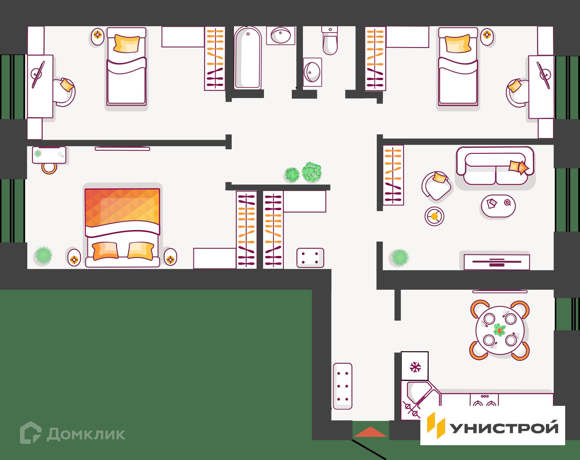 Новый дом приятно удивит вас необычной концепцией и экологичным благоустройством. Гармоничное городское пространство, стильная архитектура, двор-парк. Современная среда, закрытая от машин и доступа посторонних с фонтаном и лаунж-зоной во дворе для ценителей комфорта, удобства расположения, современных инженерных решений и высокого качества строительства от надежного застройщика «Унистрой». Новый микрорайон Жилой комплекс расположен в Автозаводском районе Тольятти. В 10 минутах езды от Южного бульвара – спортивный комплекс «Лада-Арена», торговые центры «Акварель», «Капитал», строительный магазин «Леруа Мерлен». Рядом с ЖК – остановка общественного транспорта «Ул. Полякова», откуда можно уехать в любой район города, поликлиника №3. В Южном бульваре расположен детский сад №116, рядом – гимназия №77. На территории комплекса ведется проектирование второго детского сада и дополнительных двух внутриквартальных дорог, которые позволят выехать на Южное шоссе и быстро добраться до любой точки города, загород в выходные. Двор-парк Новый дом, как и весь проект ЖК, будет реализован в сегменте комфорт-класса, но наделен принципиально новыми для города особенностями. Новинкой дома станет уютный двор-парк. Пространство будет закрыто от машин и доступа посторонних. Зайти на территорию смогут только жители и их гости. Двор будет оборудован охраной и видеонаблюдением. Вы сможете с экрана телефона наблюдать, как играют ваши дети во дворе. Для приватного отдыха, работы на свежем воздухе и встреч с друзьями будет лаунж-зона с фонтаном и разнообразным озеленением. Для прогулок с детьми – экологичные игровые пространства с использованием дерева, гальки, щепы, песка. Стильный дом Мы спроектировали входы в подъезды и двор без пандусов и ступеней, чтобы вам было удобно гулять с коляской. Привычное пространство первых этажей будет наполнено новыми стилевыми решениями. На первых этажах каждого подъезда мы установили колясочные комнаты с велопаркингом. Санки, велосипеды, коляски не будут занимать место в вашей квартире. В доме будут установлены бесшумные лифты и удобная навигация. Террасы, теплые лоджии, евродвушки В новом доме представлено большое разнообразие планировочных решений. Эксклюзивный формат квартир с террасами во дворах позволит создать уютное место для летних завтраков. Для удобства в солнечные и дождливые дни предусмотрены теневые навесы – маркизы. Балконы в новом доме заменили теплые лоджии, которые делают помещение полезным и позволяют его использовать круглый год. Теплые лоджии освобождают вас от необходимости утепления помещения и установки дополнительных отопительных приборов. На теплой лоджии можно оборудовать небольшой спортзал, рабочий кабинет или зону отдыха. Также в доме есть студии, 1-комнатные, евродвушки, 2- и 3-комнатные квартиры. Современные решения Все квартиры будут сдаваться в качественной предчистовой отделке. Горизонтальная разводка отопления (трубы спрятаны в полу) позволит воплотить все дизайнерские решения. Показания приборов учета воды, электричества тепла будут автоматически подаваться в Сервисную компанию. Решение удобно еще и тем, что 24/7 ведется мониторинг расхода всех ресурсов. И в случае чрезмерного расхода, к примеру, воды, специалисты смогут перекрыть ее без доступа в квартиру, в общем 