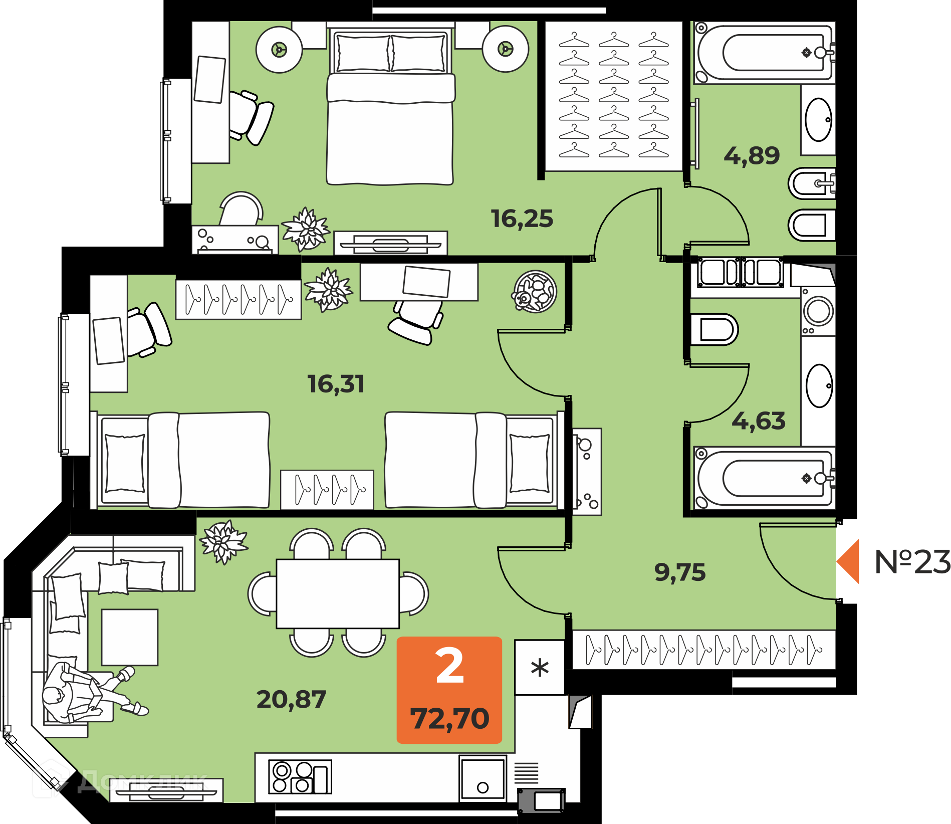- ✅ Кухня: 20.87 м² — идеальна для семейных ужинов.