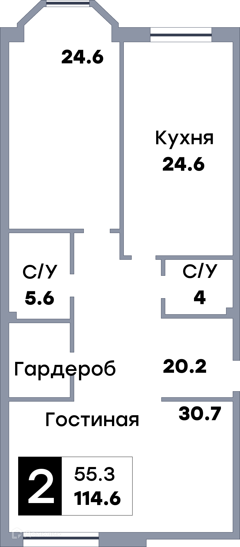 - ✅ Кухня: 24.6 м² — эргономичное пространство.