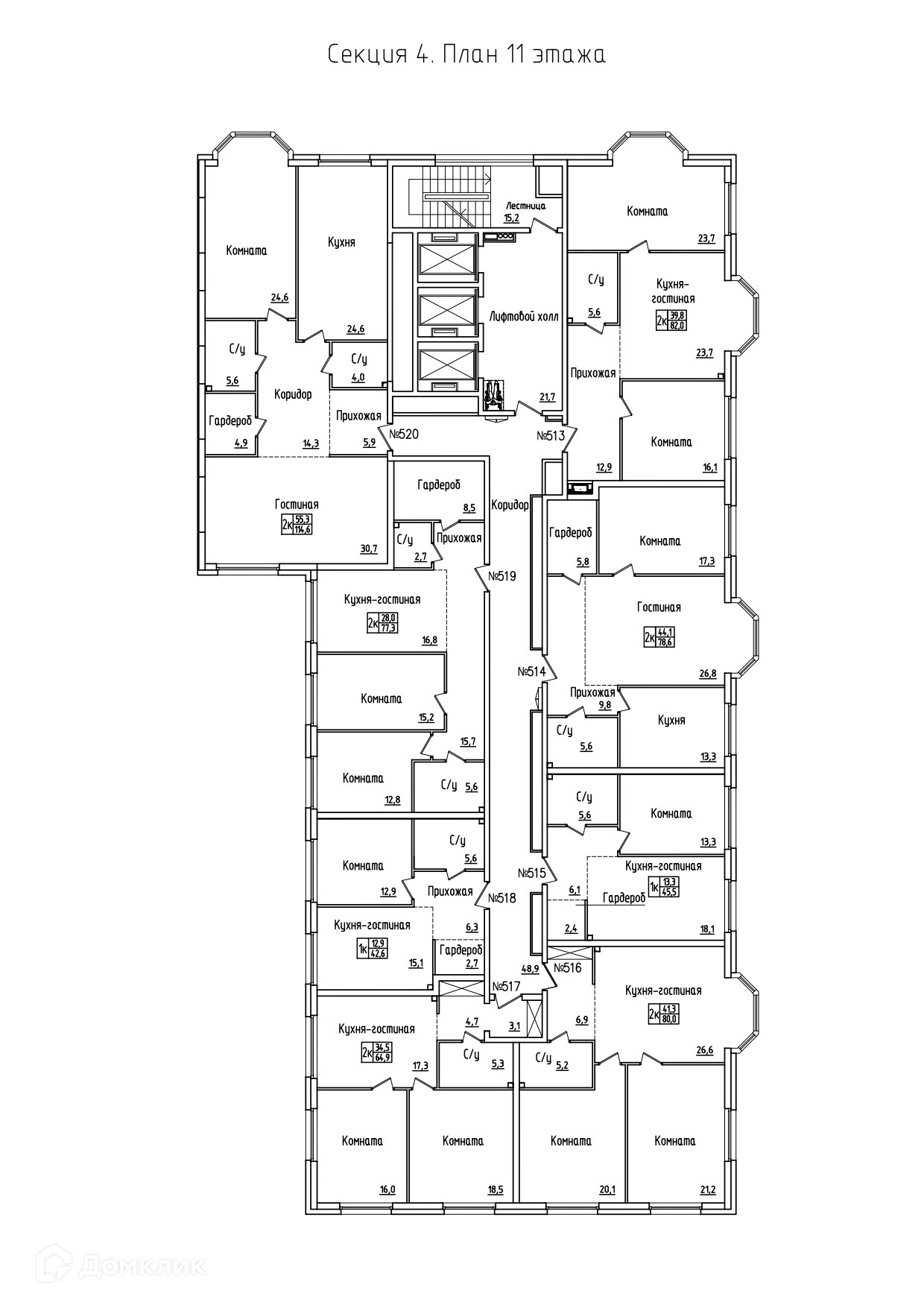 Квартира расположена на 11-м этаже 25-этажного дома.