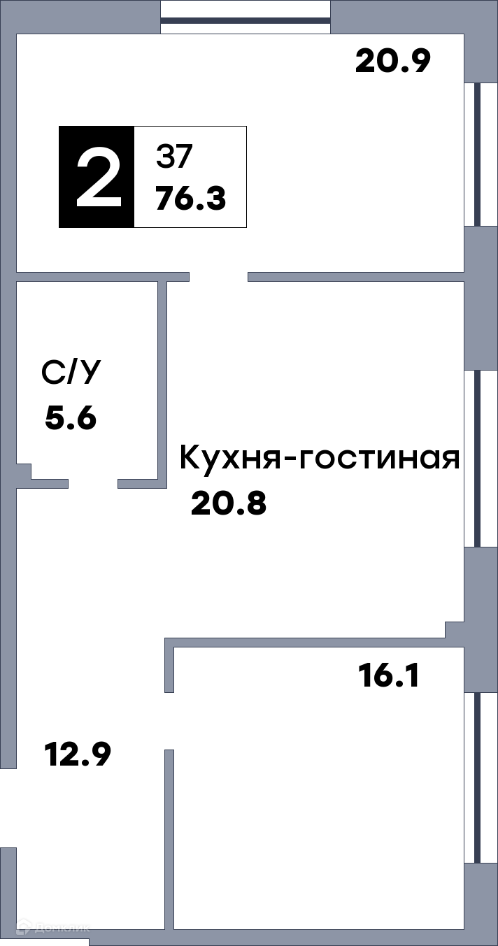 - Общая площадь: 76.3 м²