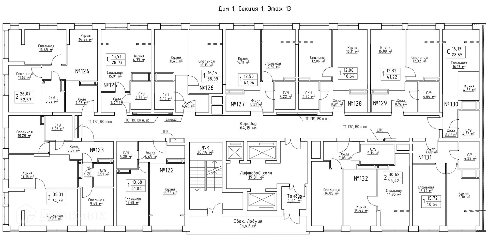 Площади квартир