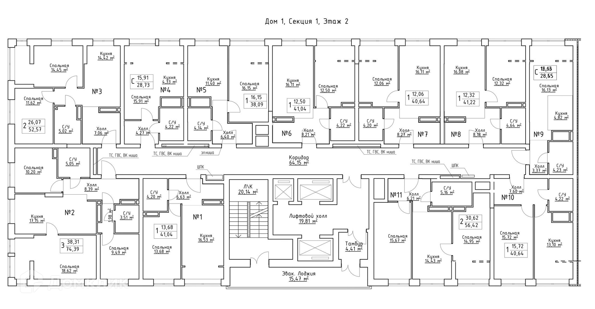 Площади квартир