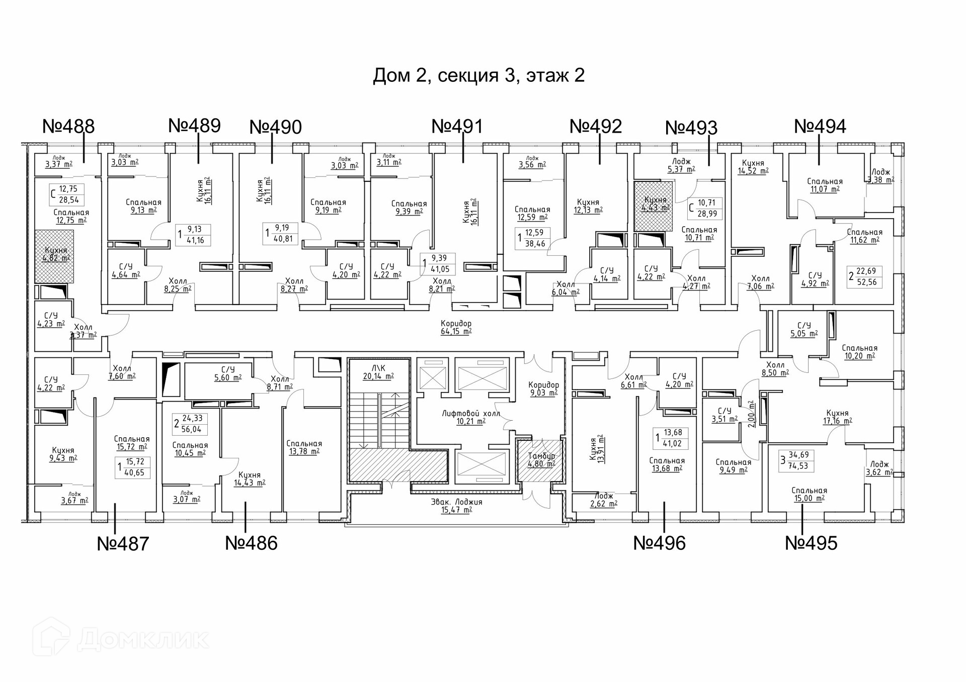 Площади квартир