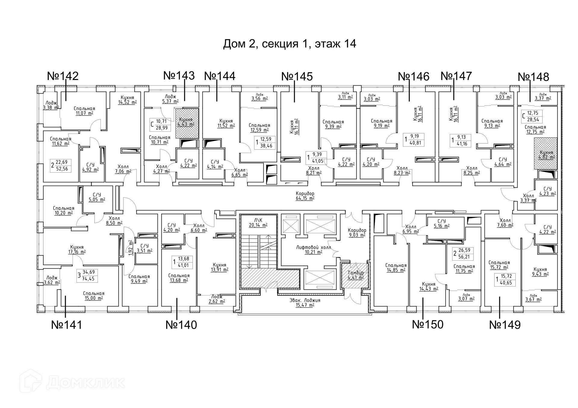 Площади квартир