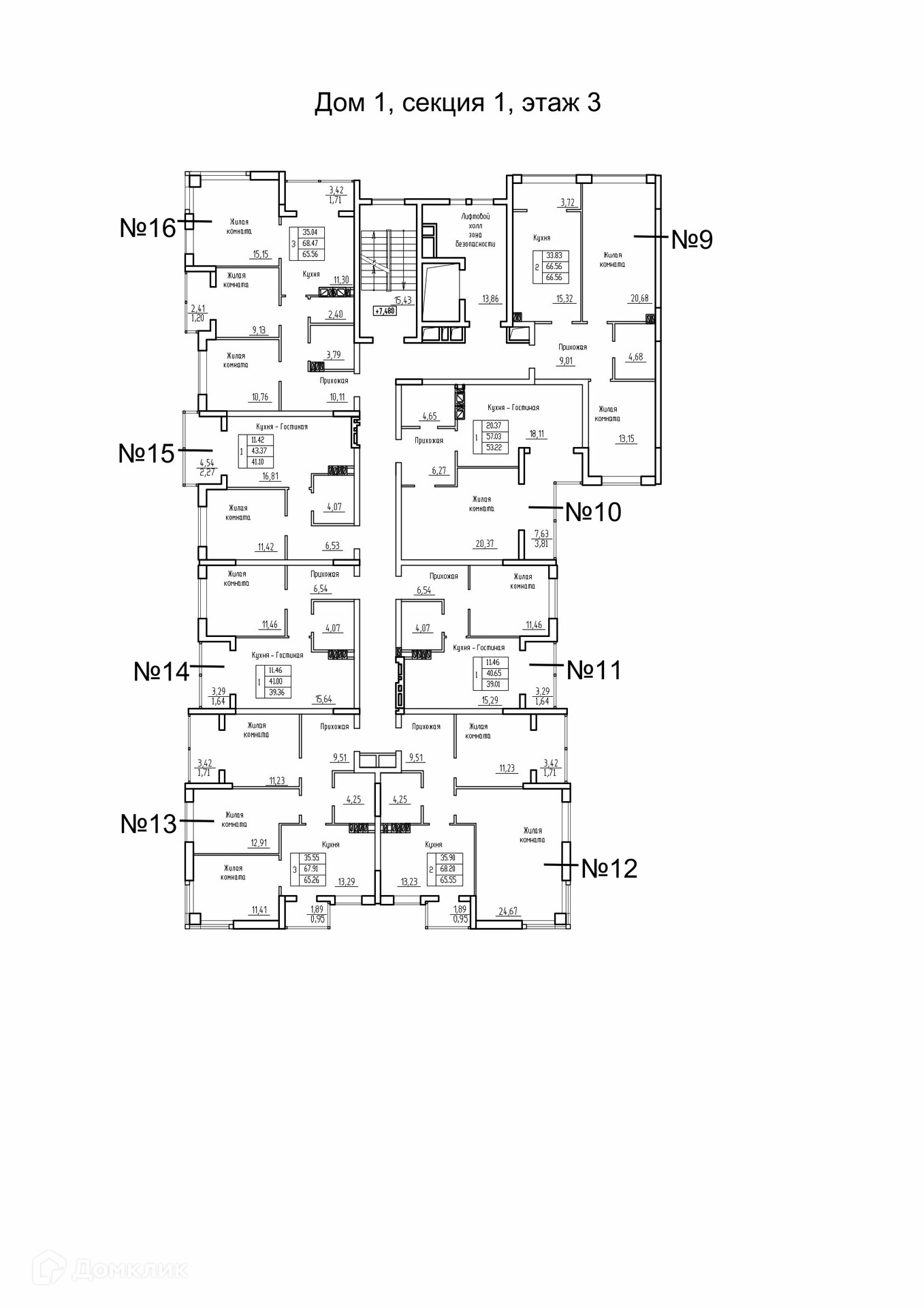 Площади квартир