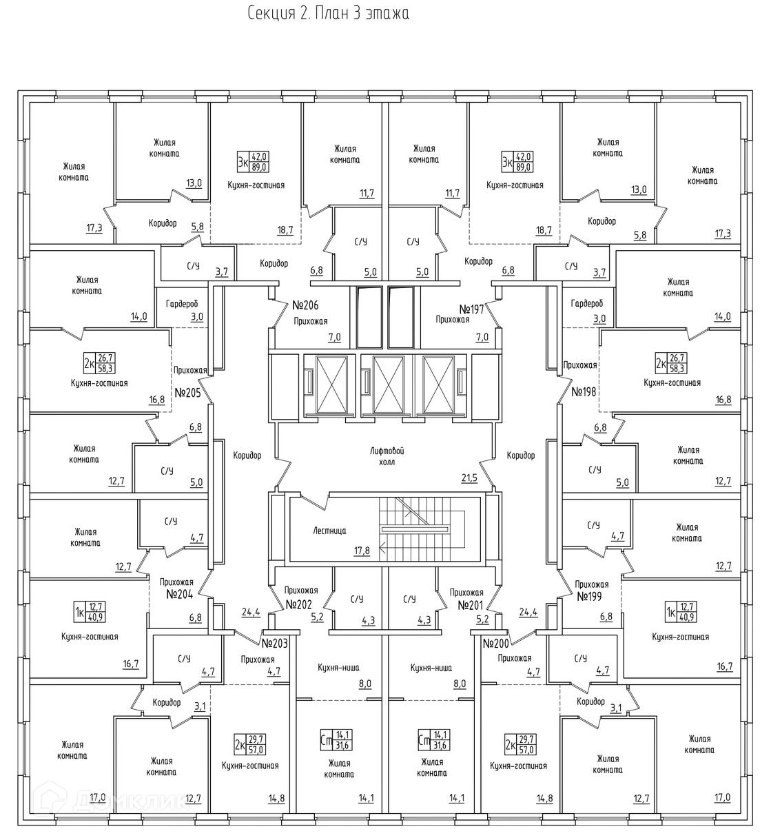 Площади квартир