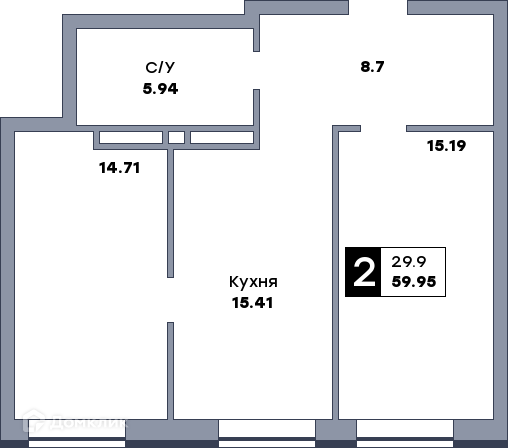 Планировка 2 комн. в ЖК СПУТНИК