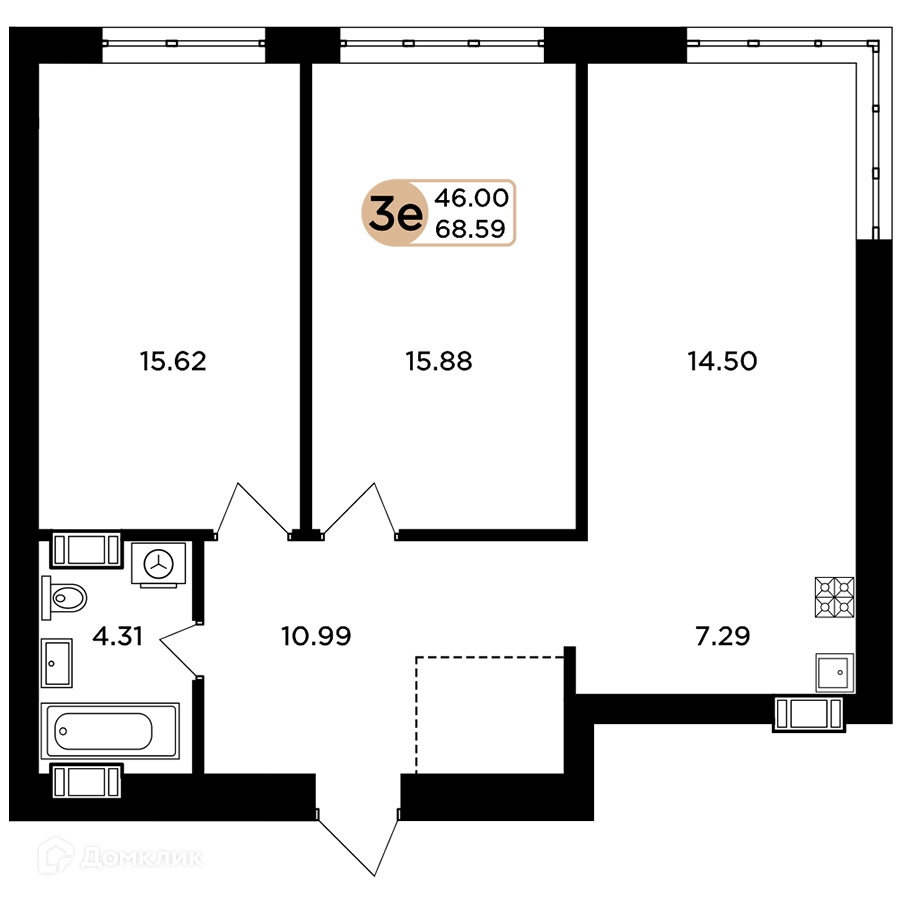 Планировка 2 комн. в ЖК Легенда