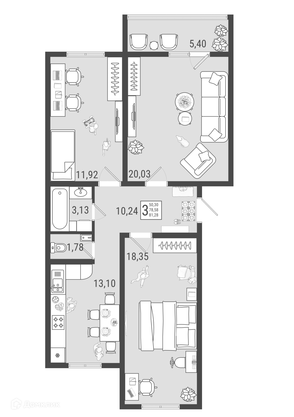 Площади квартир