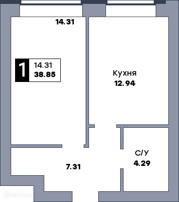 - ✅ Кухня: 12.94 м² — место для кулинарных шедевров.