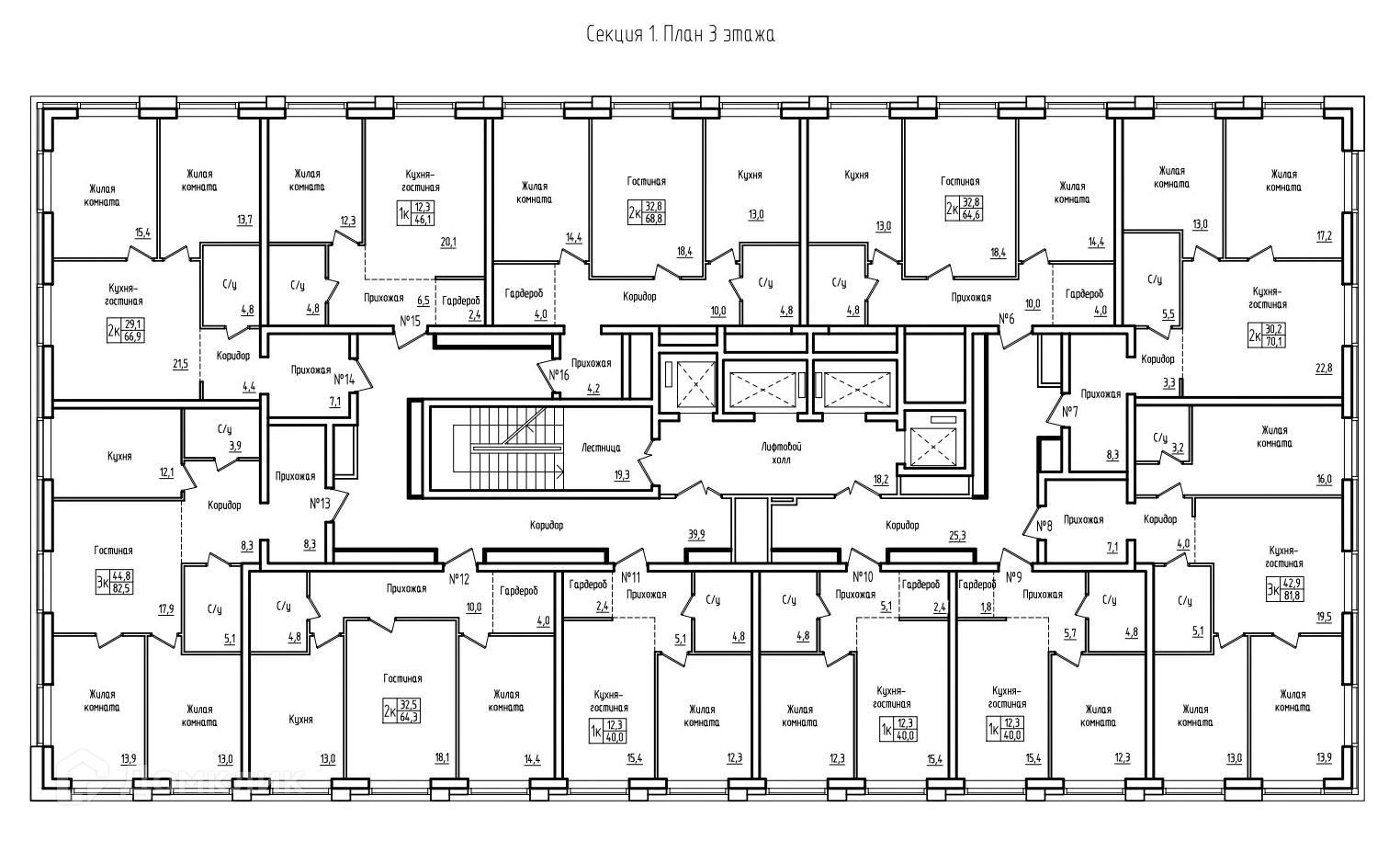 Площади квартир