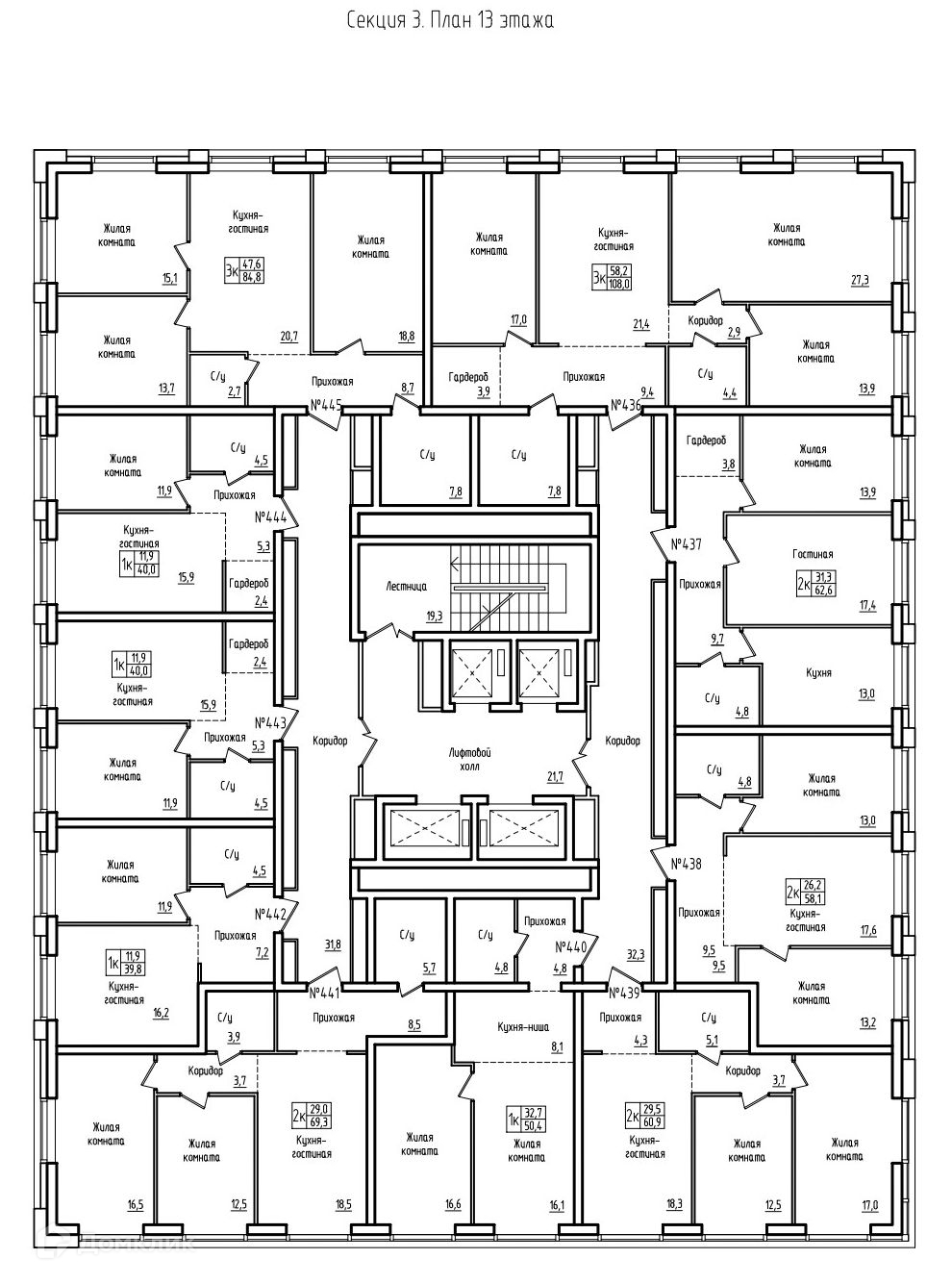Площади квартир
