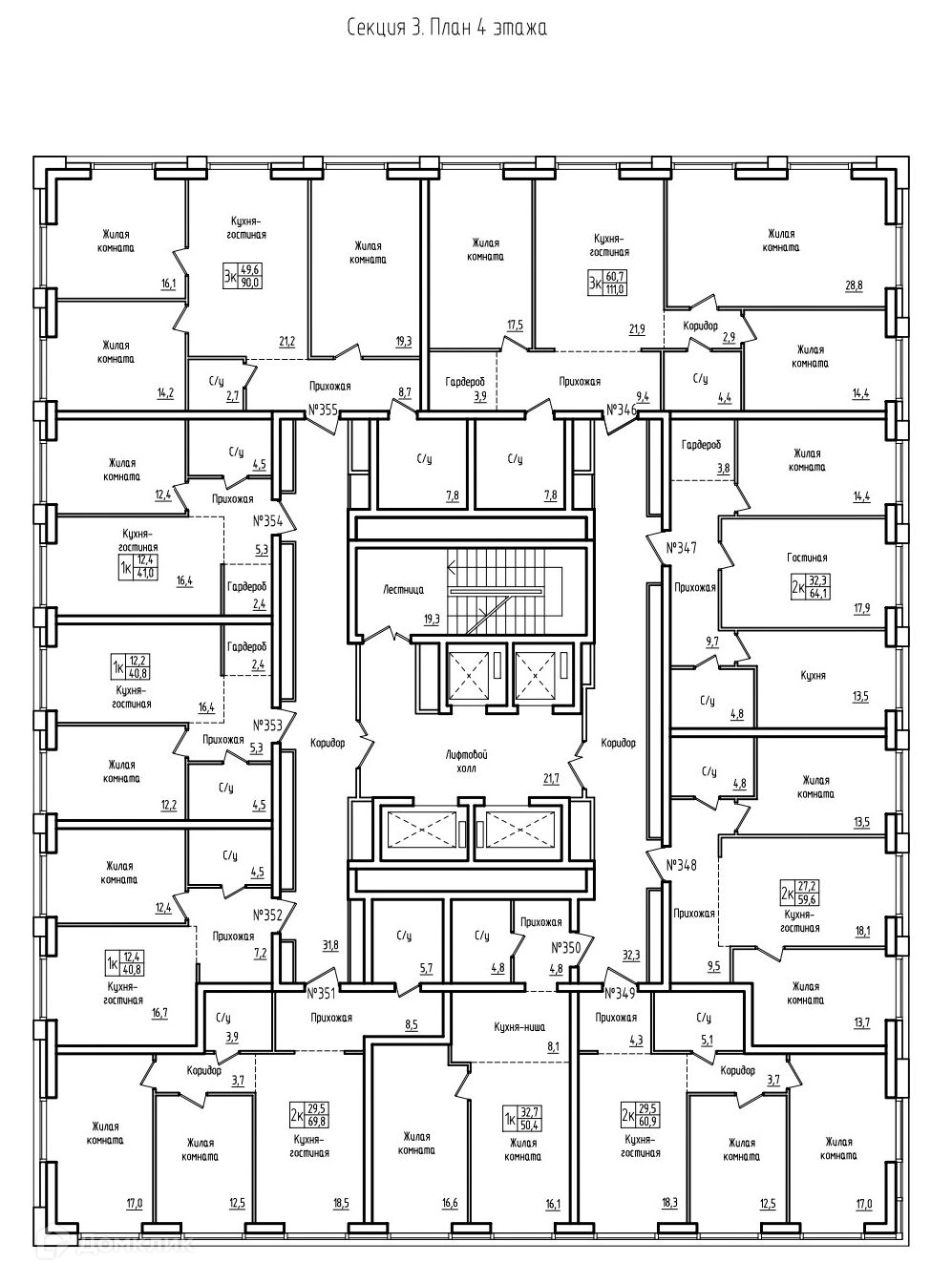 Площади квартир