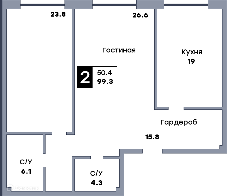 - Общая площадь: 99.3 м²