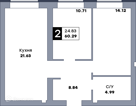 - Общая площадь: 61.3 м²