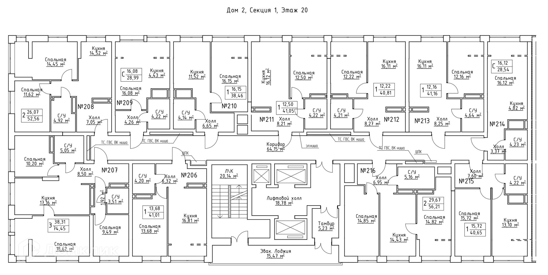 Площади квартир