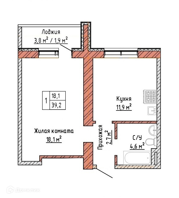 - ✅ Кухня: 11.9 м² — место для кулинарных шедевров.