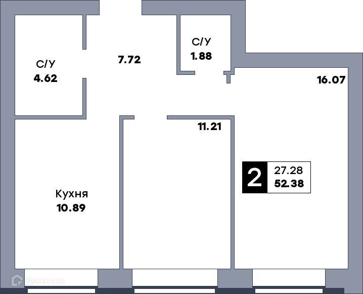 - Жилая площадь: 27.28 м²