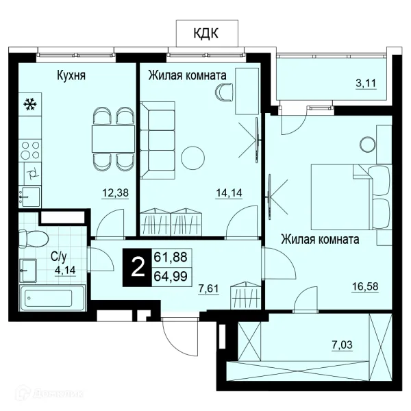 2 комн. квартира в Самаре в ипотеку от 53 309 руб/месяц