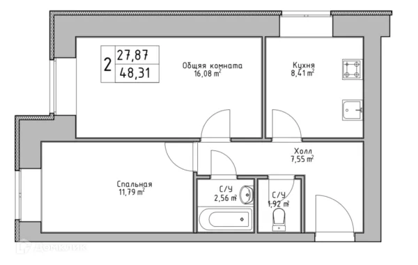 2 комн. квартира в Самаре в ипотеку от 39 848 руб/месяц