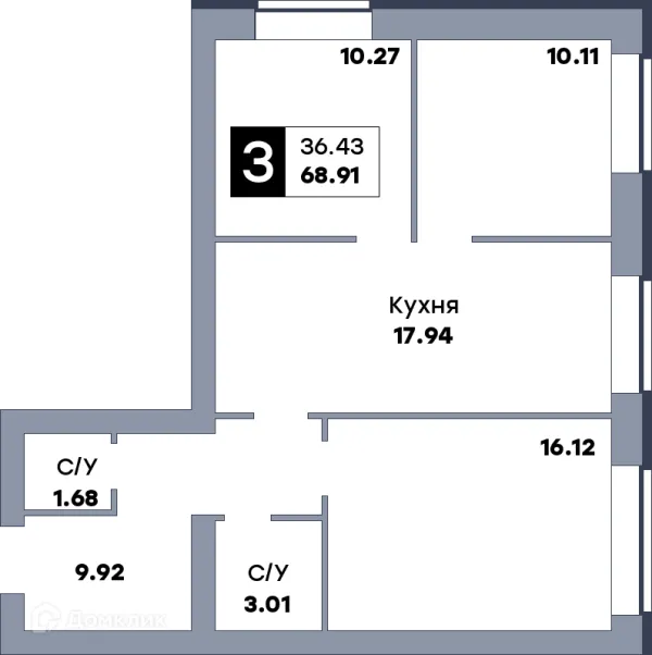 3 комн. квартира в Самаре в ипотеку от 54 187 руб/месяц