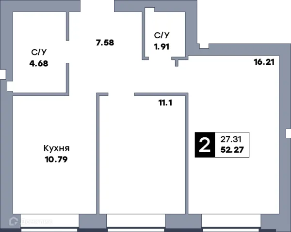 2 комн. квартира в Самаре в ипотеку от 42 797 руб/месяц