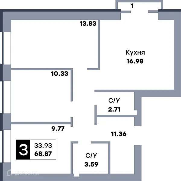 3 комн. квартира в Самаре в ипотеку от 52 337 руб/месяц