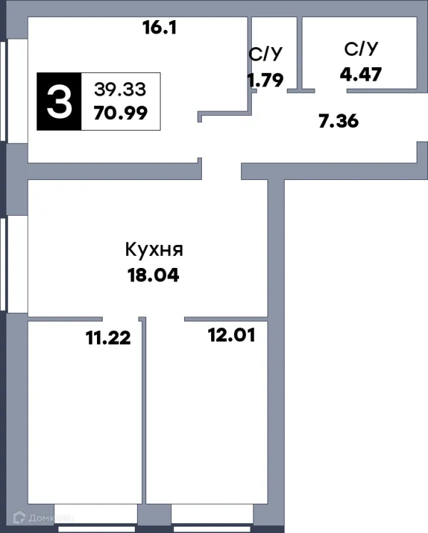 3 комн. квартира в Самаре в ипотеку от 52 653 руб/месяц