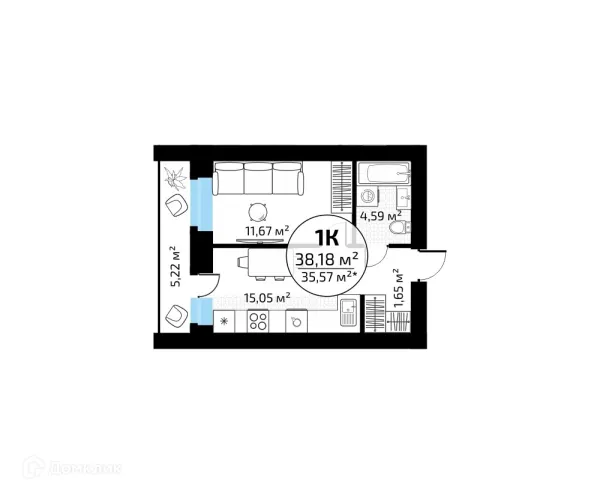 1 комн. квартира в Самаре в ипотеку от 35 589 руб/месяц