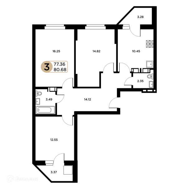 3 комн. квартира в Самаре в ипотеку от 68 402 руб/месяц