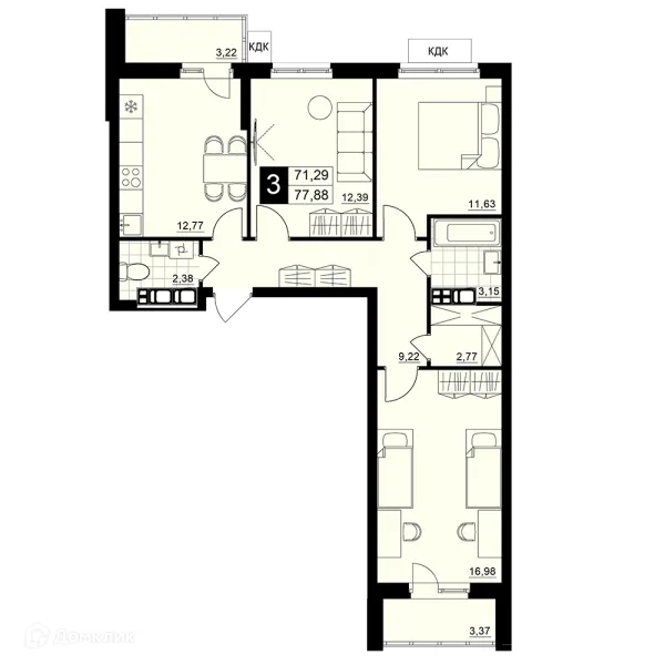3 комн. квартира в Самаре в ипотеку от 67 329 руб/месяц