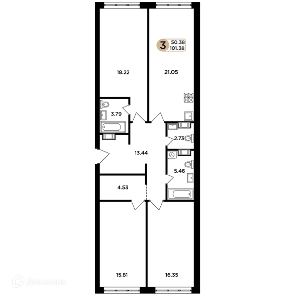3 комн. квартира в Самаре в ипотеку от 66 116 руб/месяц