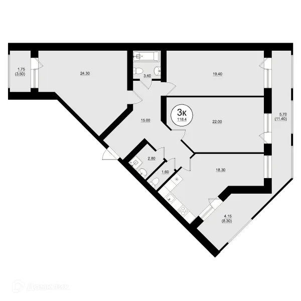3 комн. квартира в Самаре в ипотеку от 116 422 руб/месяц
